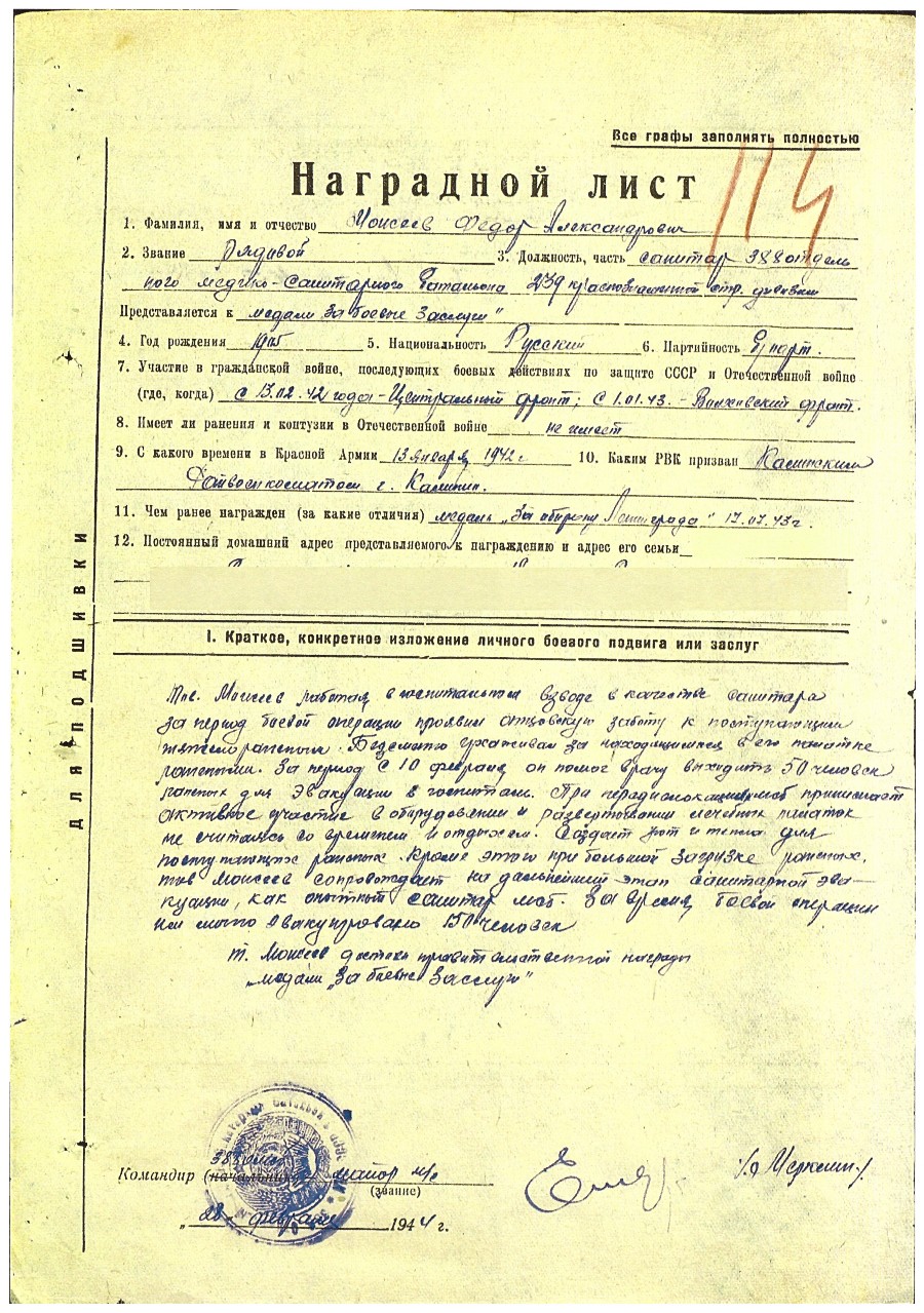 Медаль "За Боевые заслуги" Моисеева Федора Александровича