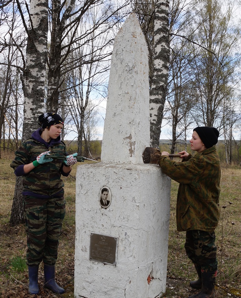 На месте гибели героя был установлен памятный знак. Но со временем соседние деревни опустели, разрушились и исчезли. Поисковики отряда «Поколение» решили напомнить землякам о подвиге совсем молодого героя, их ровесника. Ребята расчистили место перед памятником, очистили от старой краски стелу. Покрасили, облагородили территорию памятного места, высадили цветы. Почтили память Героя минутой молчания.
