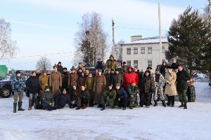Утром 23 февраля после вводной экскурсии в музее «Ржевский выступ», организаторы и участники памятных мероприятий проследовали к мемориалу павшим воинам 158 стрелковой дивизии, где был зажжен огонь Памяти. Участников авто-рейда приветствовал глава администрации Холмецкого сельского поселения Сергей Николаевич Крылов, рассказал о тех, кто погиб на Холмецкой земле. После возложения цветов к именам павших воинов, был дан старт акции. Задача для 12 экипажей автолюбителей предстояла нелёгкая: сквозь снег проехать по линии фронта к месту совершения героического подвига Абрамом Левиным 22 февраля 1942 г. Испытание оказалось достаточно сложным, к памятнику удалось добраться только экипажу рыжего УАЗа – Поганкину Станиславу, Тузовым Олегу, Яне, Лине, самому маленькому участнику Дмитрию Руцкому. На лыжах со стороны д. Комары к памятнику добрались Людмила и Андрей (автор реконструкции памятника) Смирновы. Мы на личном опыте убедились в том, насколько тяжело было добираться воинам 158-й к линии фронта. Если не всем подготовленным внедорожникам покорилась февральская заметённая снегом дорога, становится ясно, почему тогда в в феврале 42-го так сильно отставали обозы с продовольствием, артиллерия… Только человек, у которого есть большая цель, мог идти в бой по колено, по пояс в снегу… Оставшиеся в живых ветераны 158-й с горечью вспоминали товарищей, оставшихся на снегу у Холмеца. В первые дни боёв под шквальным огнём некому было выносить раненных с поля боя. И вот 77 лет спустя также в феврале, мирные люди добрались сюда, чтобы почтить память павших защитников Отечества.