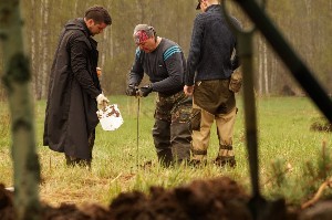 После завершения митинга представители духовенства провели свои необходимые обрядовые процедуры, по окончании которых поисковики приступили к процессу погребения останков.